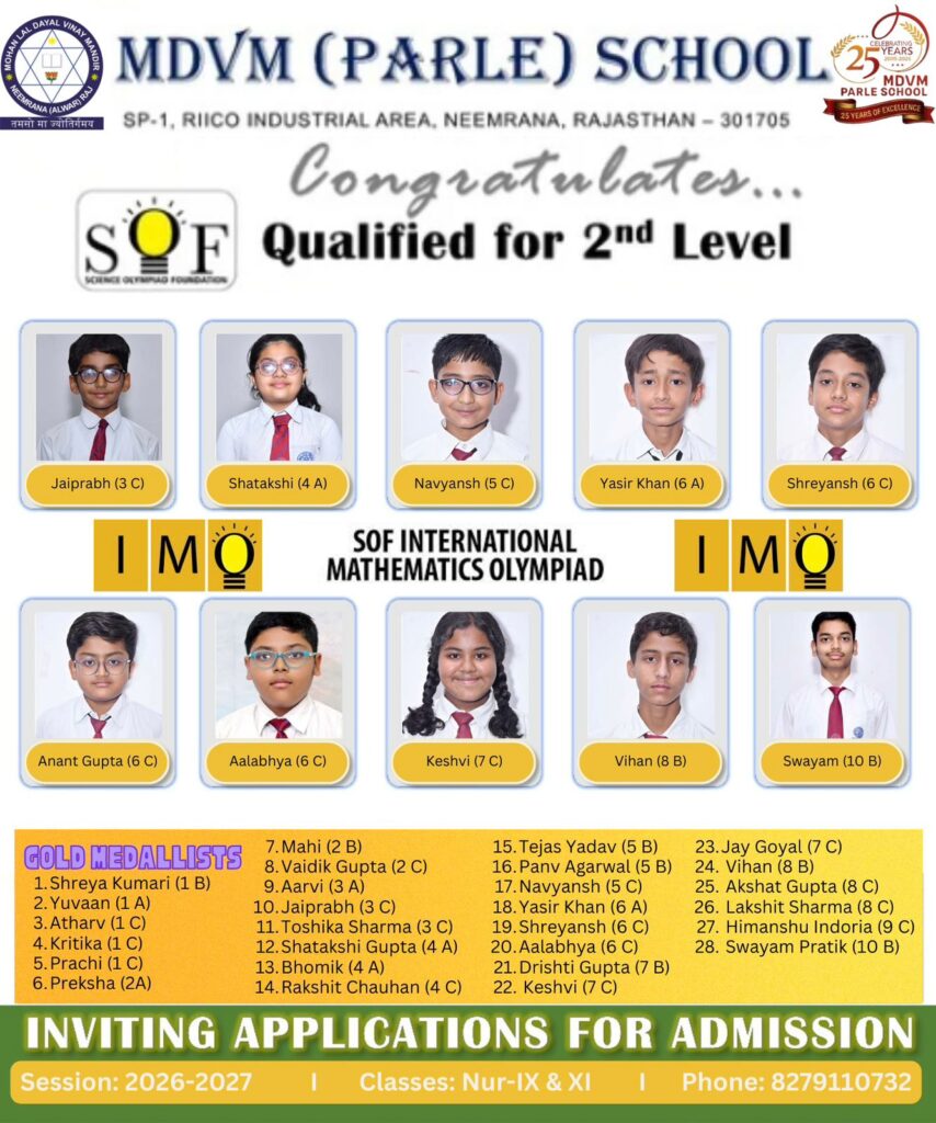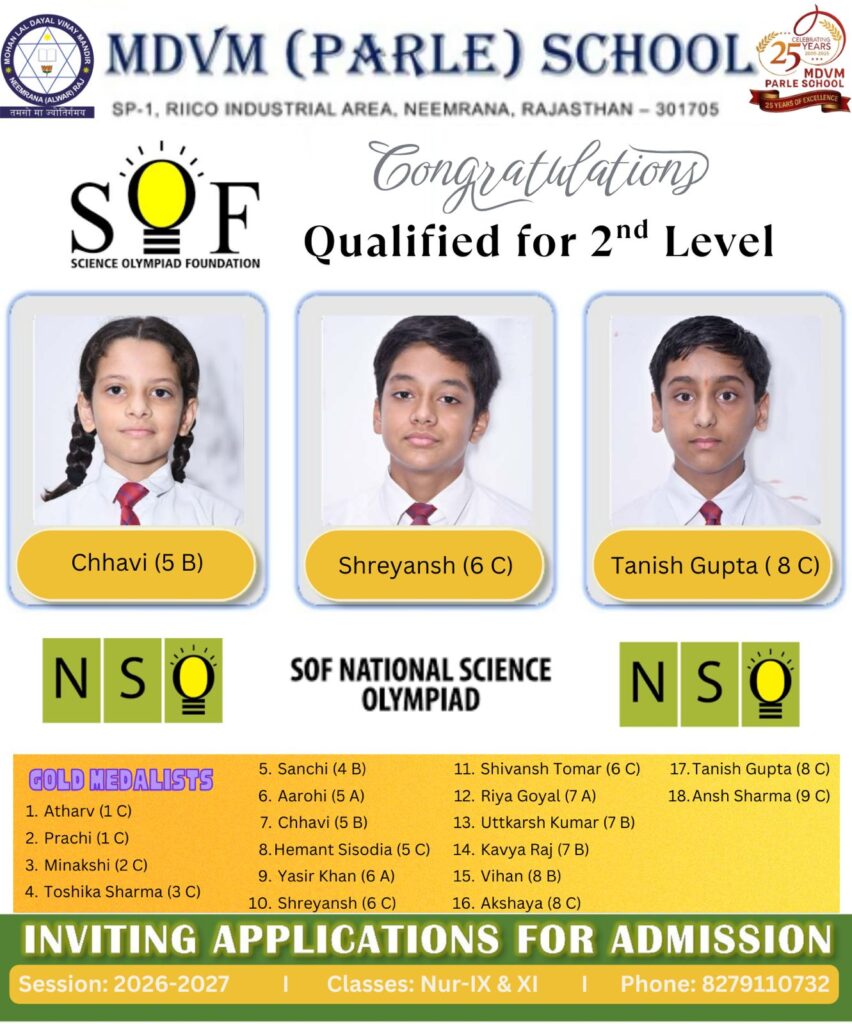 Through these Olympiads—covering English, Mathematics, Science, Hindi, Cyber Awareness, Environmental Studies (Green Olympiad), and Science Talent (VVM)—students strengthened their subject knowledge, analytical thinking, problem-solving abilities, and overall competitive spirit.