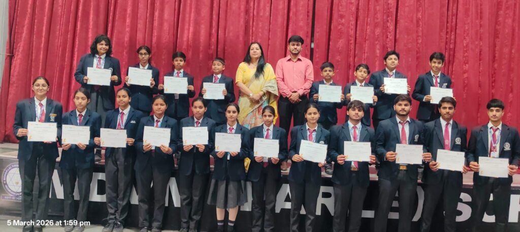Students of our school actively participated in a wide range of Olympiads conducted by SilverZone, SOF, Hindi Olympiad Foundation, Cyber Olympiad, Green Olympiad, and Vidyarthi Vigyan Manthan (VVM). They attempted all examinations confidently and with great enthusiasm.