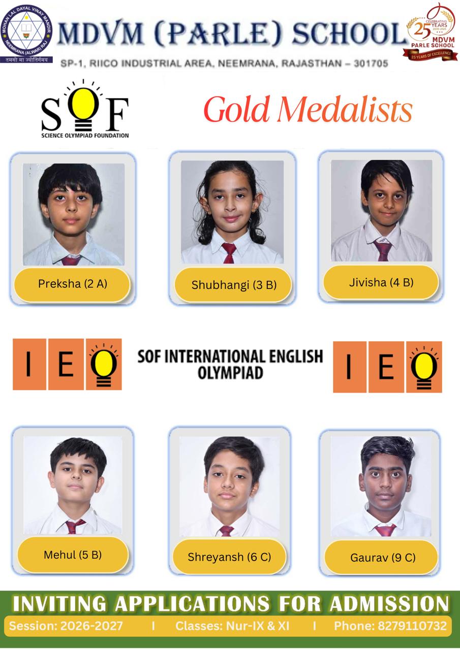 Our students have made us immensely proud with their exceptional performance in SOF Olympiads. They secured 28 Gold Medals in IMO, 18 Gold Medals in NSO, and 6 Gold Medals in NIEO.